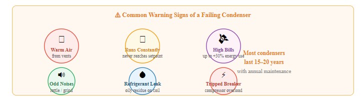 Kondensor yang rusak atau kotor secara langsung menurunkan kinerja dan efisiensi sistem AC Anda. Perhatikan tanda-tanda peringatan ini: